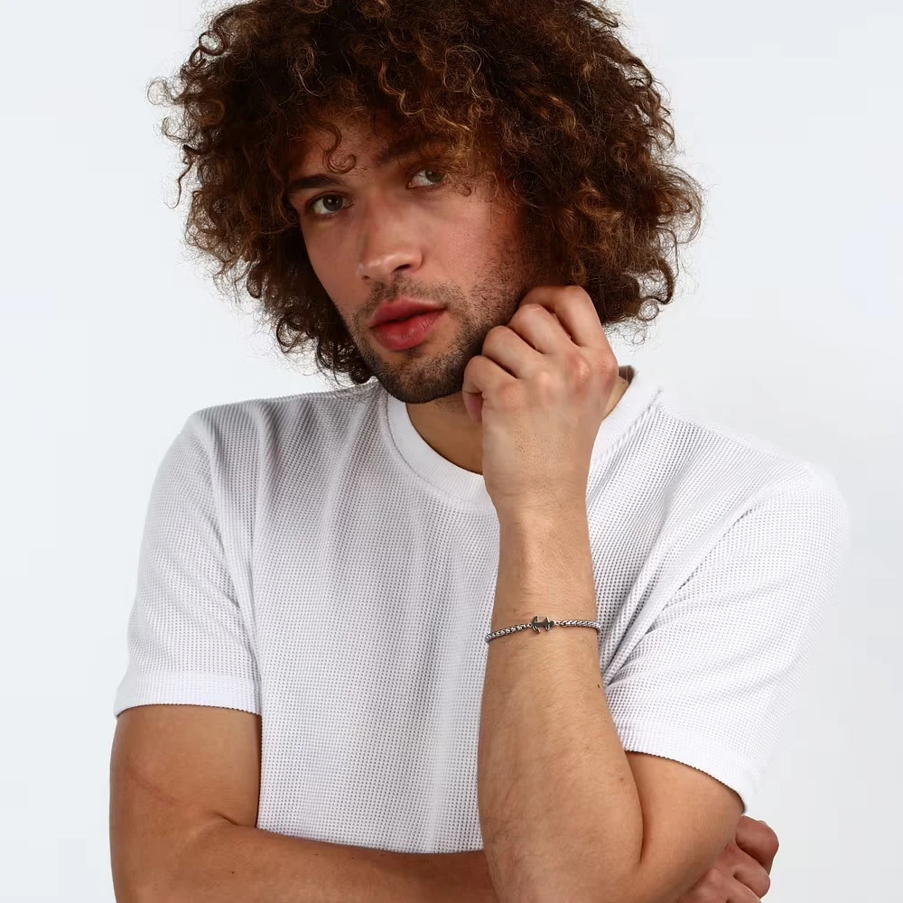 En ce qui concerne son poids, le bracelet pèse 8,800 gr, ce qui lui confère une présence notable sans être excessivement lourd. Cette caractéristique permet au porteur de le porter facilement tout au long de la journée, sans inconfort. De plus, le bracelet arbore un symbole ‘encore’, une touche distinctive qui enrichit son design et peut évoquer divers significations personnelles ou symboliques, contribuant à son attrait unique. Ce détail, bien que subtil, joue un rôle clé dans l’identité visuelle du bracelet, ajoutant une profondeur à son esthétique.