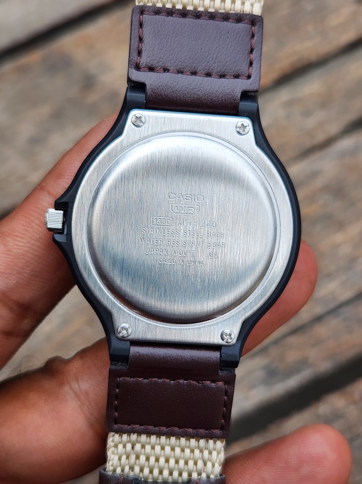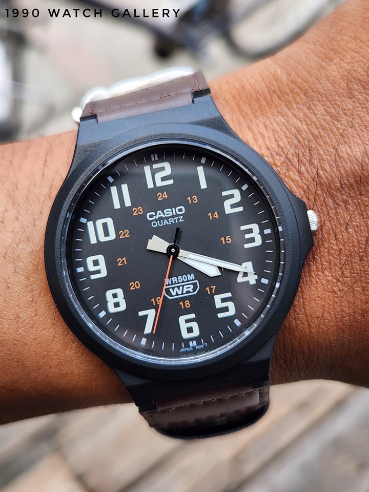 Un autre point fort de la Casio MW-240B-5BVDF est la clarté de son affichage. Le cadran orange, associé à des chiffres et aiguilles contrastants, offre une lisibilité optimale sous différents éclairages. Que vous soyez en pleine randonnée en montagne ou en train de naviguer en forêt, vous pouvez rapidement consulter l’heure sans effort. De plus, le design sans fioritures renforce non seulement l’esthétique de la montre, mais favorise également une utilisation intuitive.