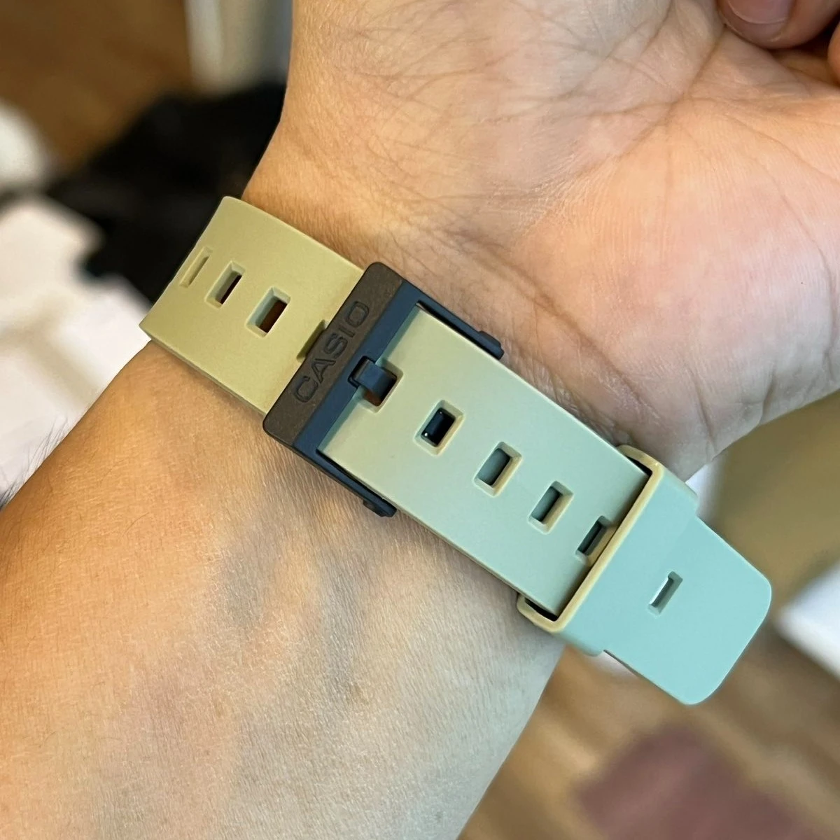 La Casio LF-20W-3ADF se distingue par l’utilisation innovante de bandes en résine bio, un matériau qui offre une alternative durable et écologique aux bandes en plastiques traditionnelles. La résine bio est produite à partir de ressources renouvelables, ce qui réduit considérablement l’empreinte carbone liée à sa fabrication. En optant pour cette matière première, Casio témoigne d’un engagement sérieux envers la durabilité et l’environnement.