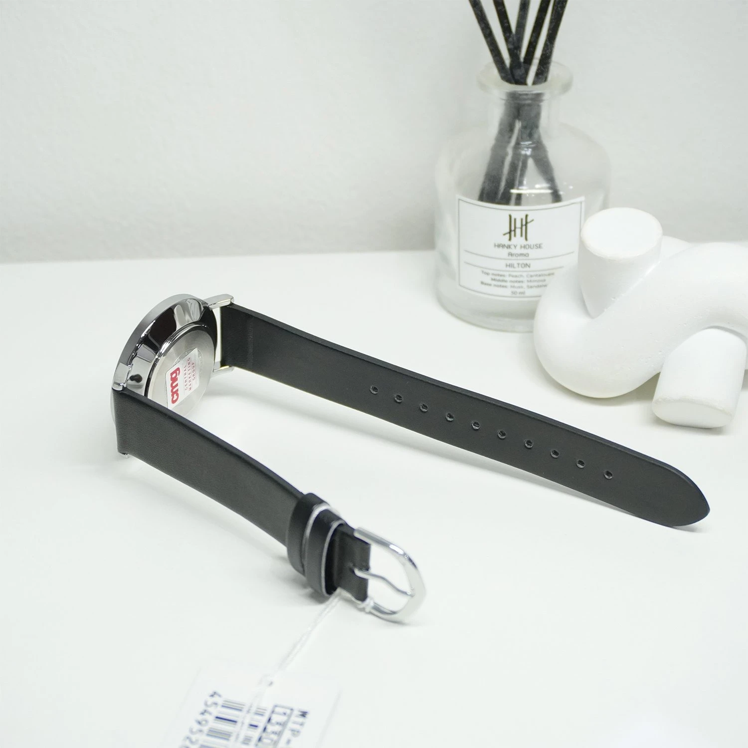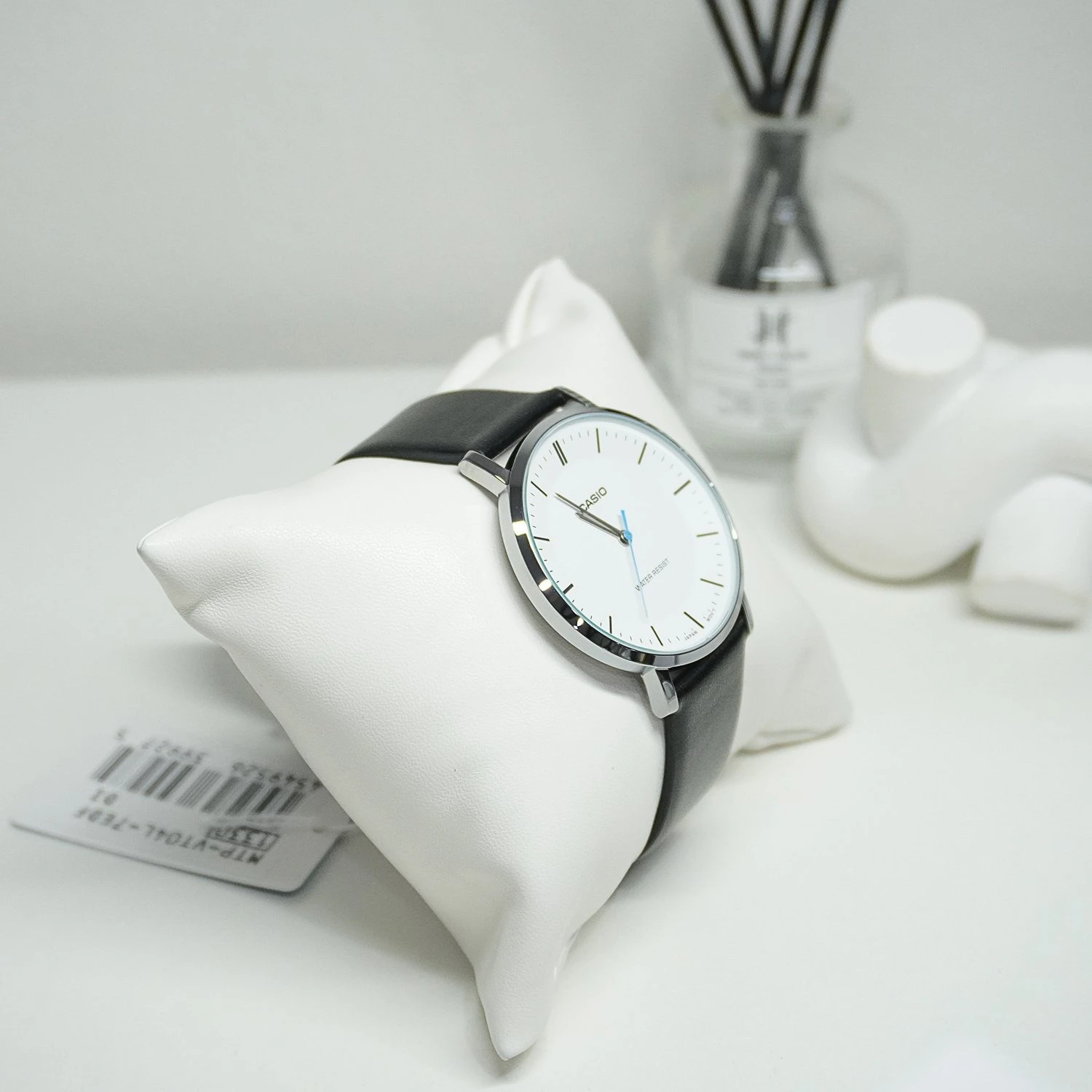 Montre Analogique Minimaliste pour Homme – Bracelet Cuir Noir avec Cadran Concave Blanc – 3 Aiguilles – MTP-VT04L-7EDF