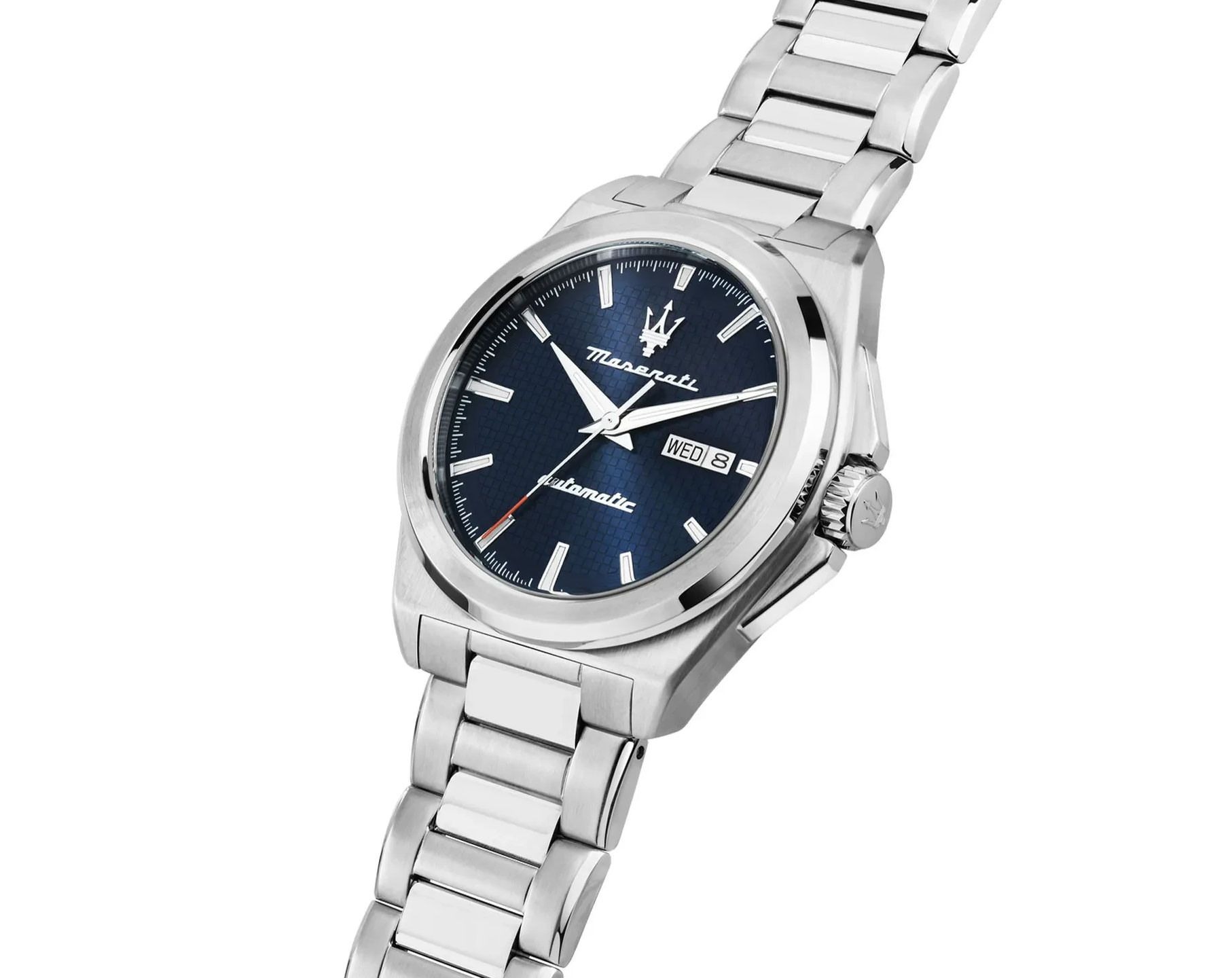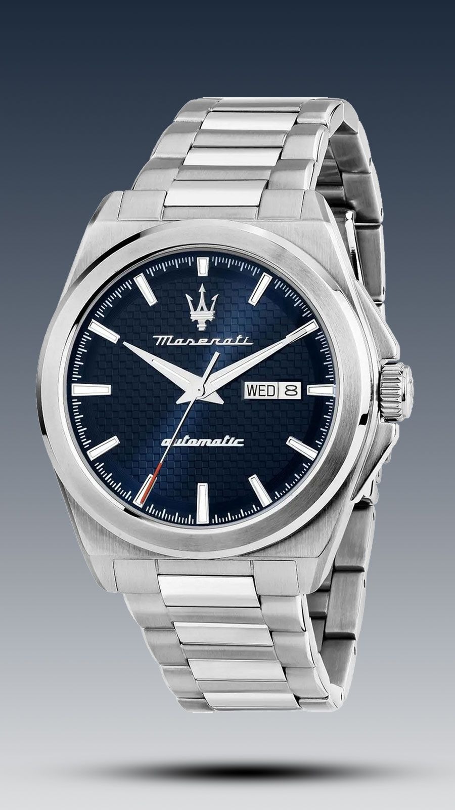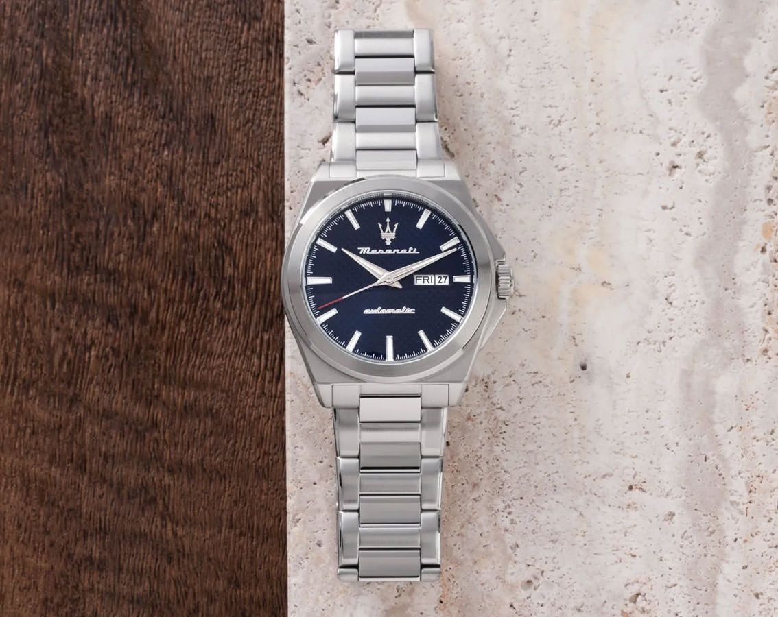 Montre Automatique Homme Maserati R8823152002 – Acier inoxydable Bleu Gris, Cadran Motif Carré, Etanche 10 ATM, Mouvement Miyota 8205, Bracelet Acier – Garantie 2 ans