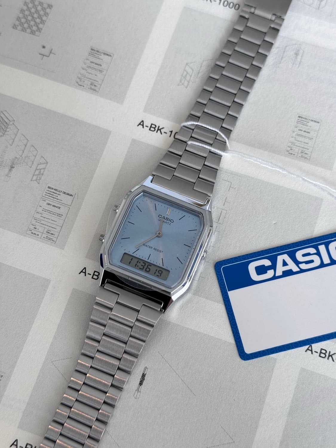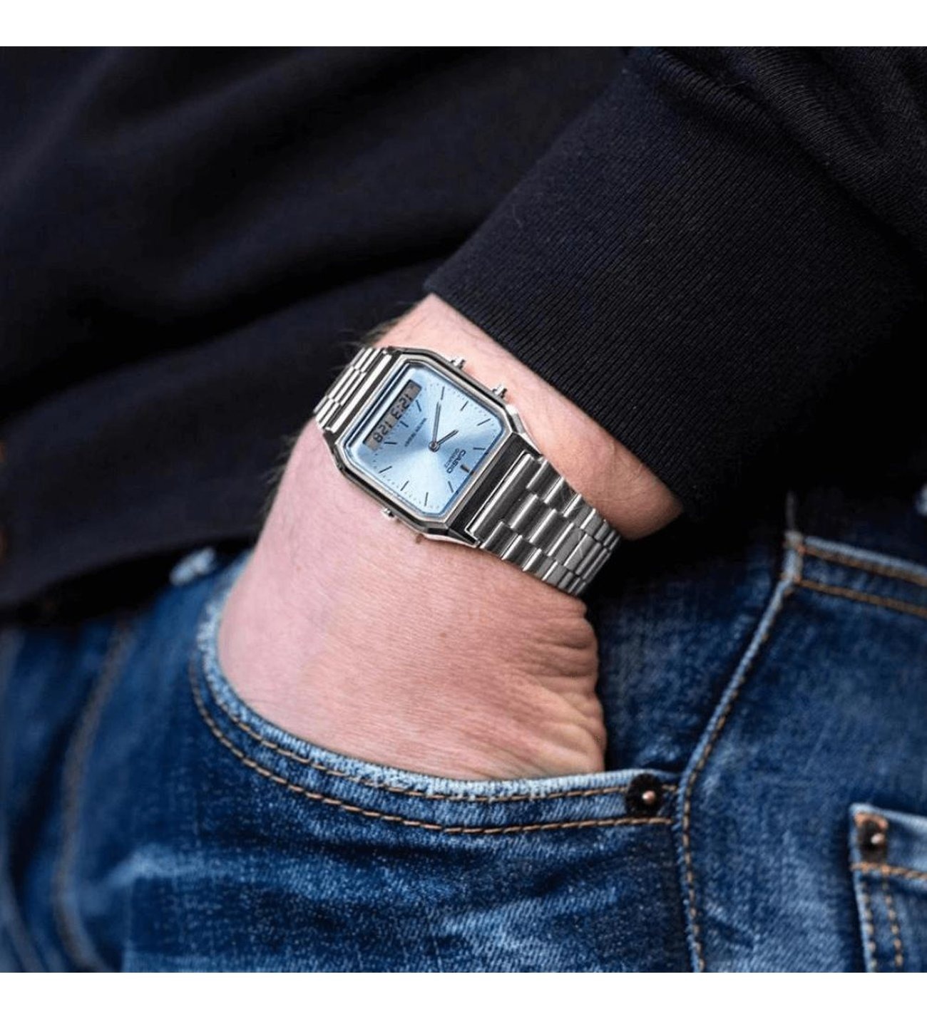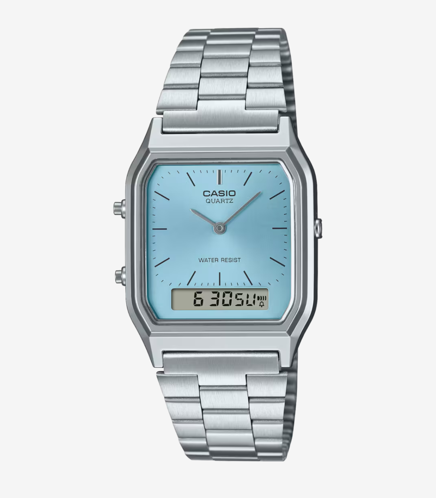 Le bracelet en acier inoxydable de la Casio AQ-230A-2A1MQYDF est un élément incontournable de son design. Non seulement il ajoute une touche de sophistication, mais il est également extrêmement confortable à porter grâce à sa flexibilité et sa résistance à la corrosion. L’acier inoxydable est connu pour sa longévité, et son entretien est relativement simple. Cette combinaison de matériaux assure une montre qui non seulement a fière allure, mais qui est également conçue pour durer, permettant à l’utilisateur de profiter de son style au quotidien.