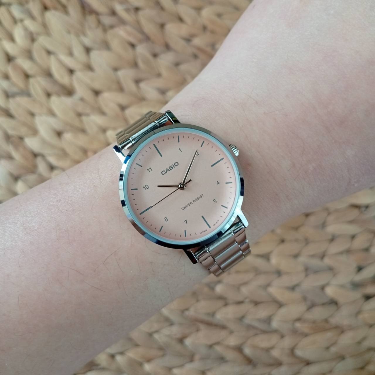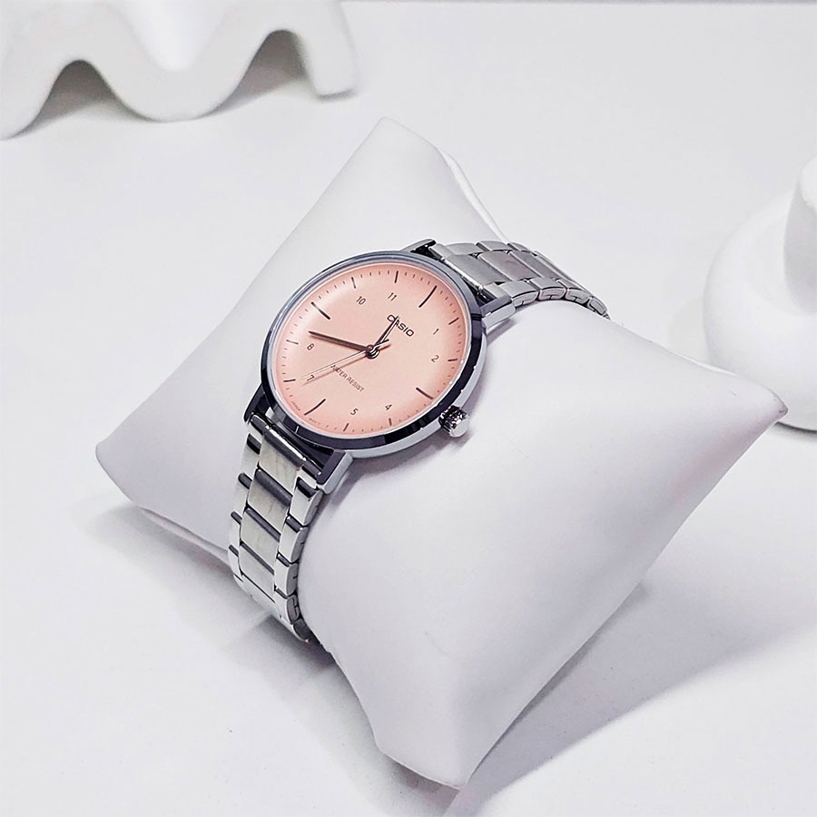 Montre Casio – Femme – Analogique, Chronométrage, Résistante à leau, Autonomie 3 ans – Bracelet Acier Inoxydable – Argent/Rose – LTP-VT03D-4BDF