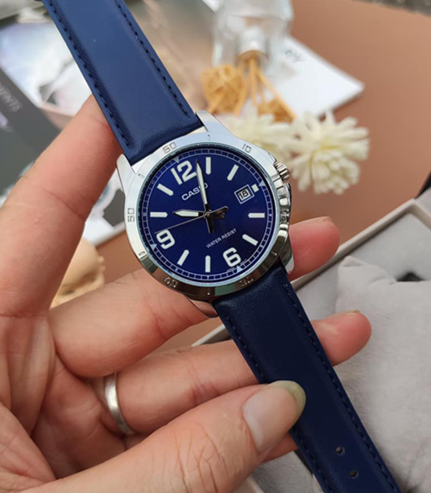 Étanchéité à 30 mètre, La montre Casio LTP-V004L-2BUDF est résistante aux éclaboussures et peut être portée sous la pluie ou lors du lavage des mains. Cependant, elle n’est pas conçue pour être immergée dans l’eau (comme lors de la baignade ou de la plongée), mais elle reste parfaite pour un usage quotidien et les conditions de vie normales. l’Affichage horaire simple et clair : L’affichage de l’heure est simple et efficace, grâce aux index argentés qui se distinguent clairement sur le cadran bleu, offrant une lisibilité parfaite dans toutes les conditions de lumière. Légèreté et confort : La montre est légère et confortable à porter, même pendant de longues heures. Son boîtier de 36,5 mm de diamètre et son bracelet en cuir sont spécialement conçus pour garantir un confort maximal tout en étant suffisamment résistants pour accompagner une utilisation quotidienne.