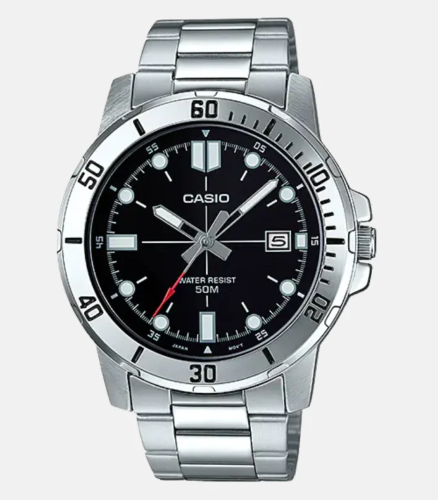 Montre CASIO Homme – MTP-VD01D-1EVUDF – Bracelet Gris En Acier Inoxydable – Résistante à l’eau – 12 Mois De Garantie
