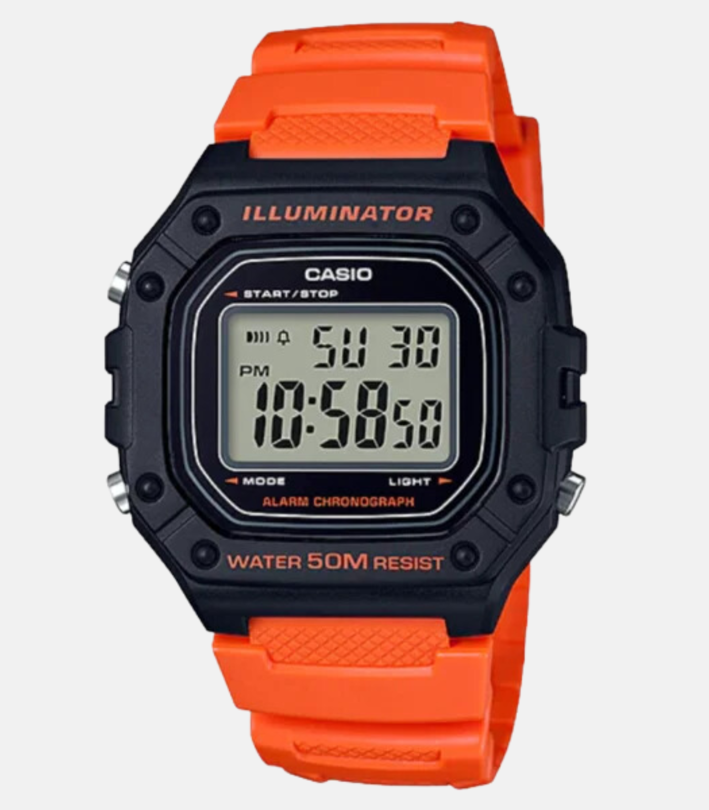 Montre CASIO Jeunesse – W-218H-4B2VDF – Bracelet Orange En Résine – Cadran Orange – Boitier En Resine – 12 Mois De Garantie