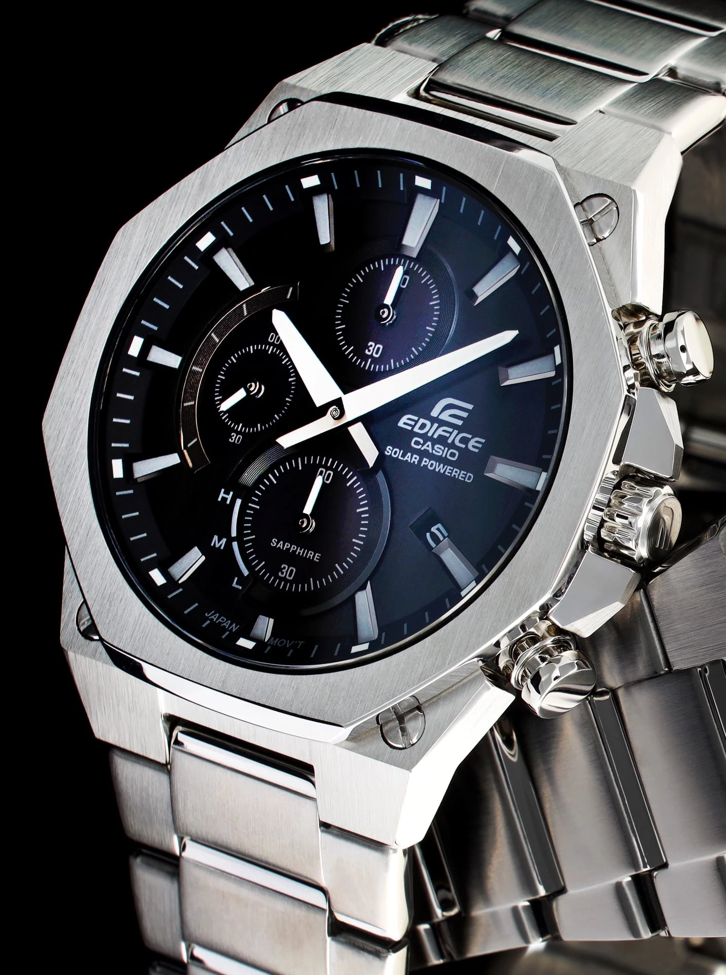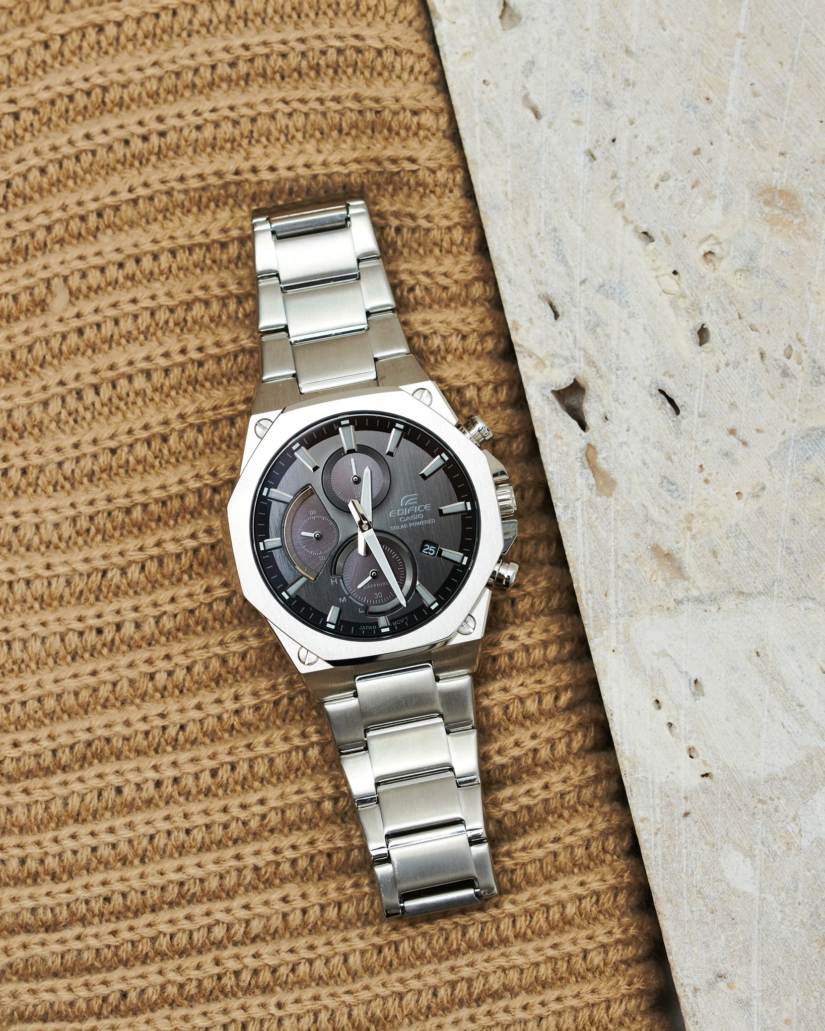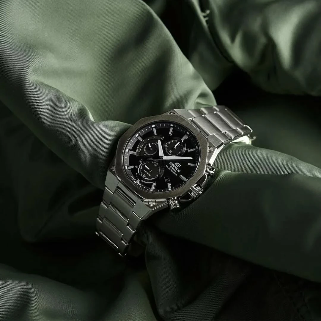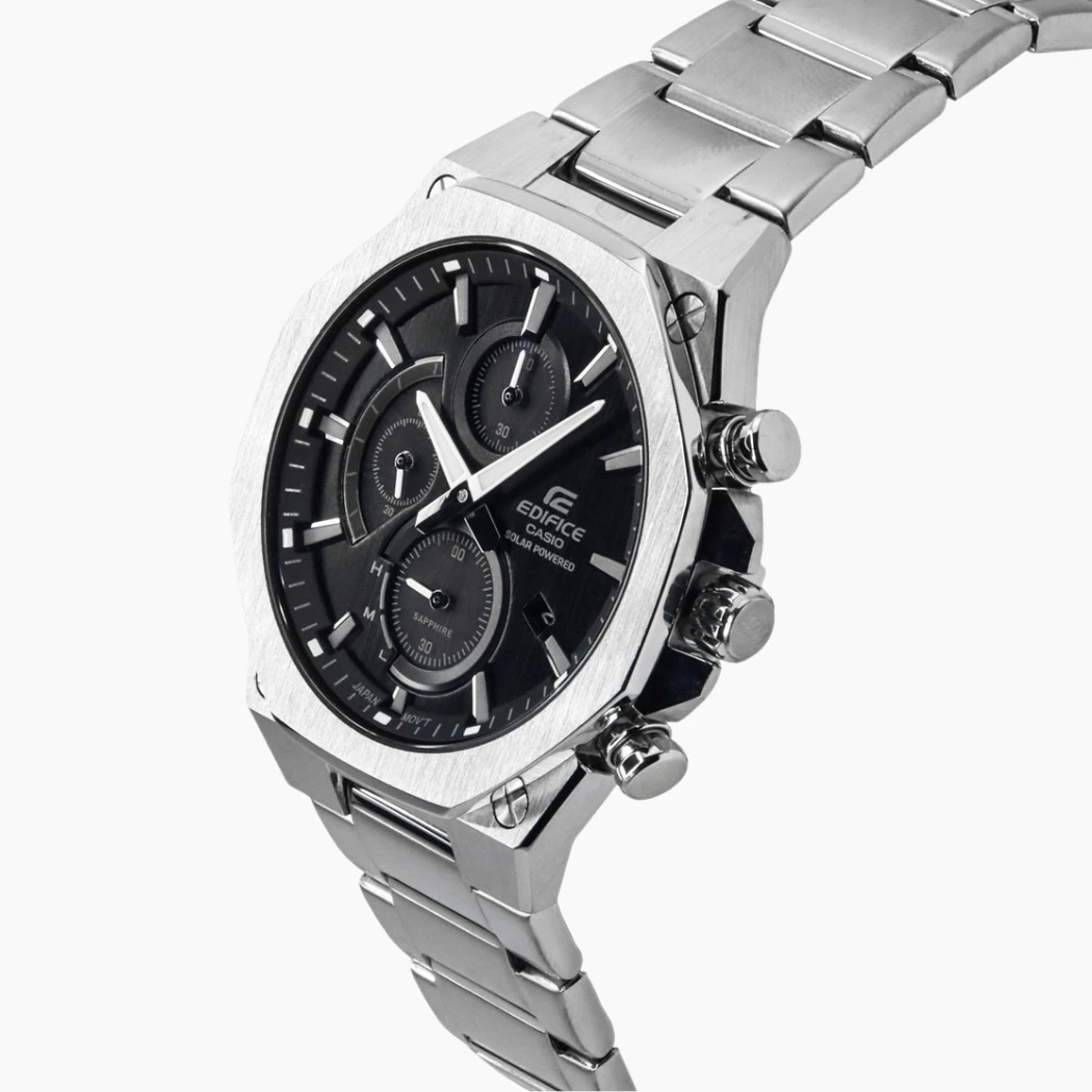 Montre Chronographe Homme Casio Edifice EFS-S570D-5AUEF – Acier Inoxydable Brossé, Solaire Japonais, Étanche 100m, Verre Saphir Antireflets, Bracelet Métal Gris à Boucle Déployante Triple, Aiguilles Luminescentes Neobrite, Dateur, Réserve de Marche 6 Mois – EFS-S570D-5AUEF