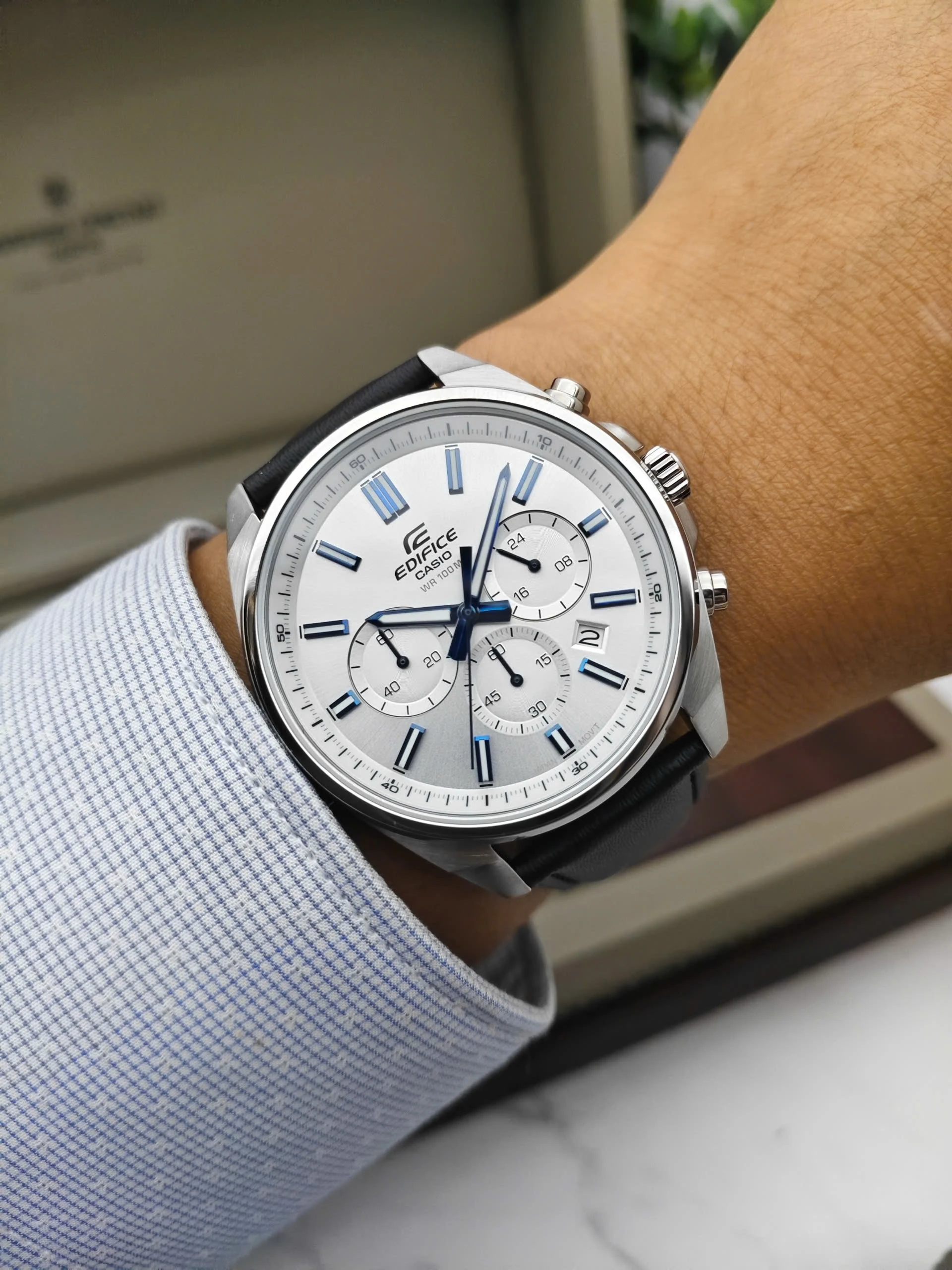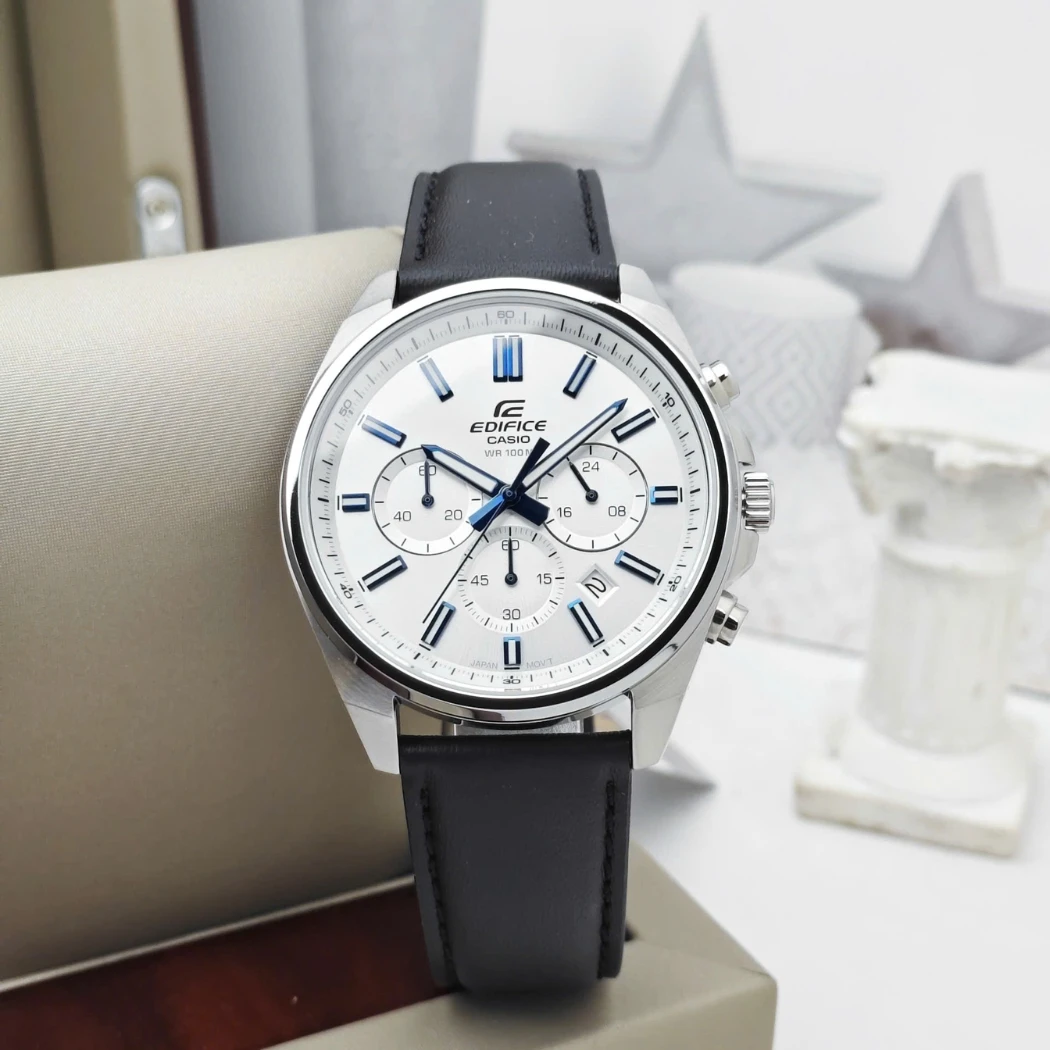 Montre Classique EFV-650L-7AVUDF – Casio EDIFICE – Acier Inoxydable, Bracelet Cuir, Verre Minéral, Résistance à l’Eau 100 m, Autonomie 2 ans, Chronographe, Affichage Date, Fermoir Triple Sécurité, Référence EFV-650L-7AVUDF