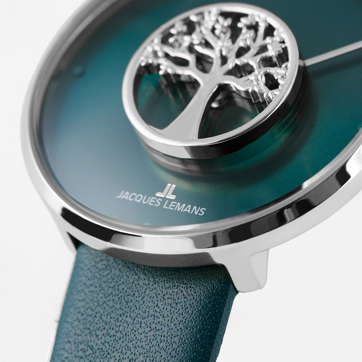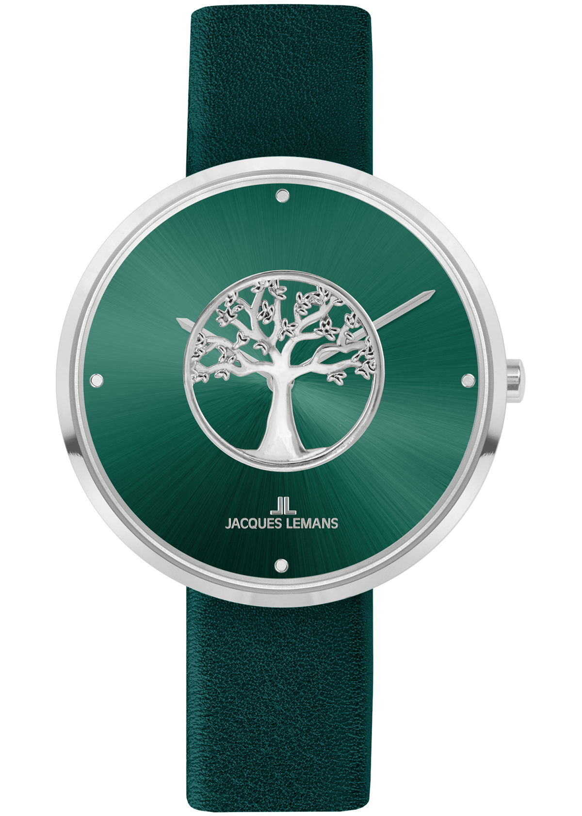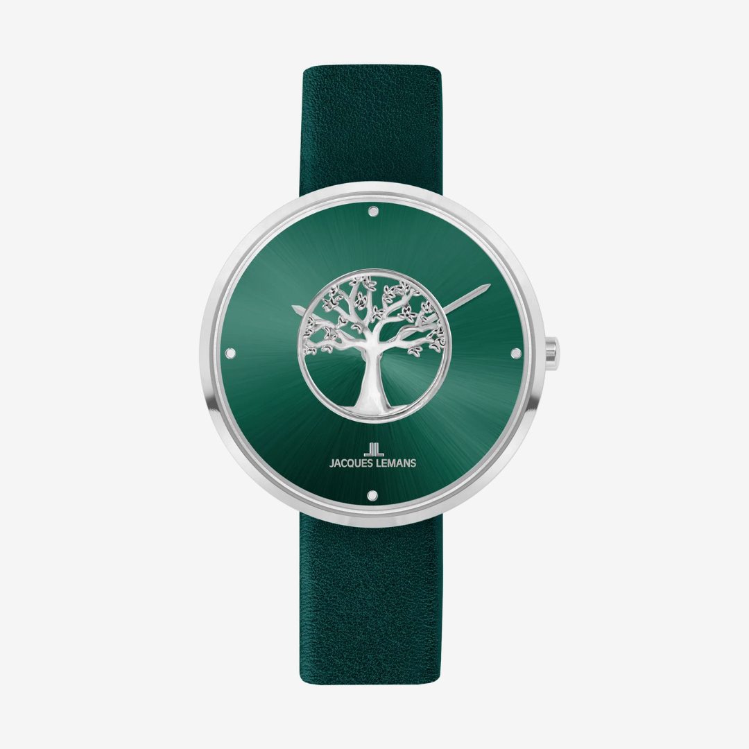 Montre Classique Femme – Design Collection, Cuir, Verre Crystex, 5 ATM, 36 mm – Jacques Lemans – Vert – 1-2092E