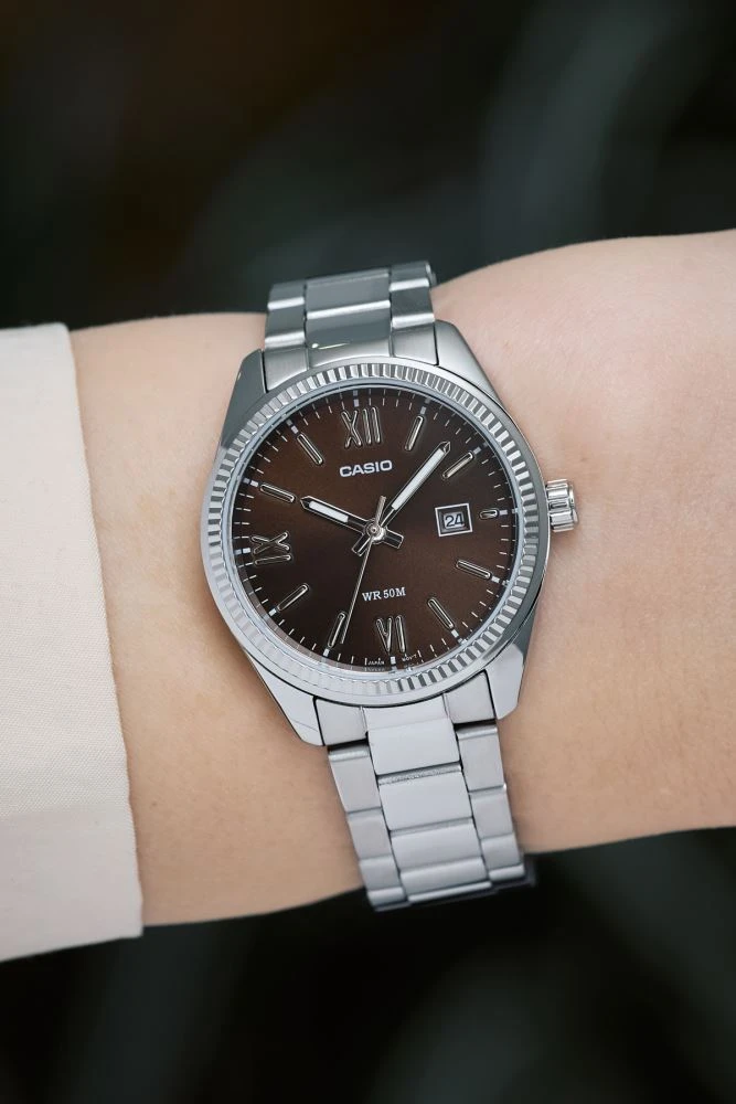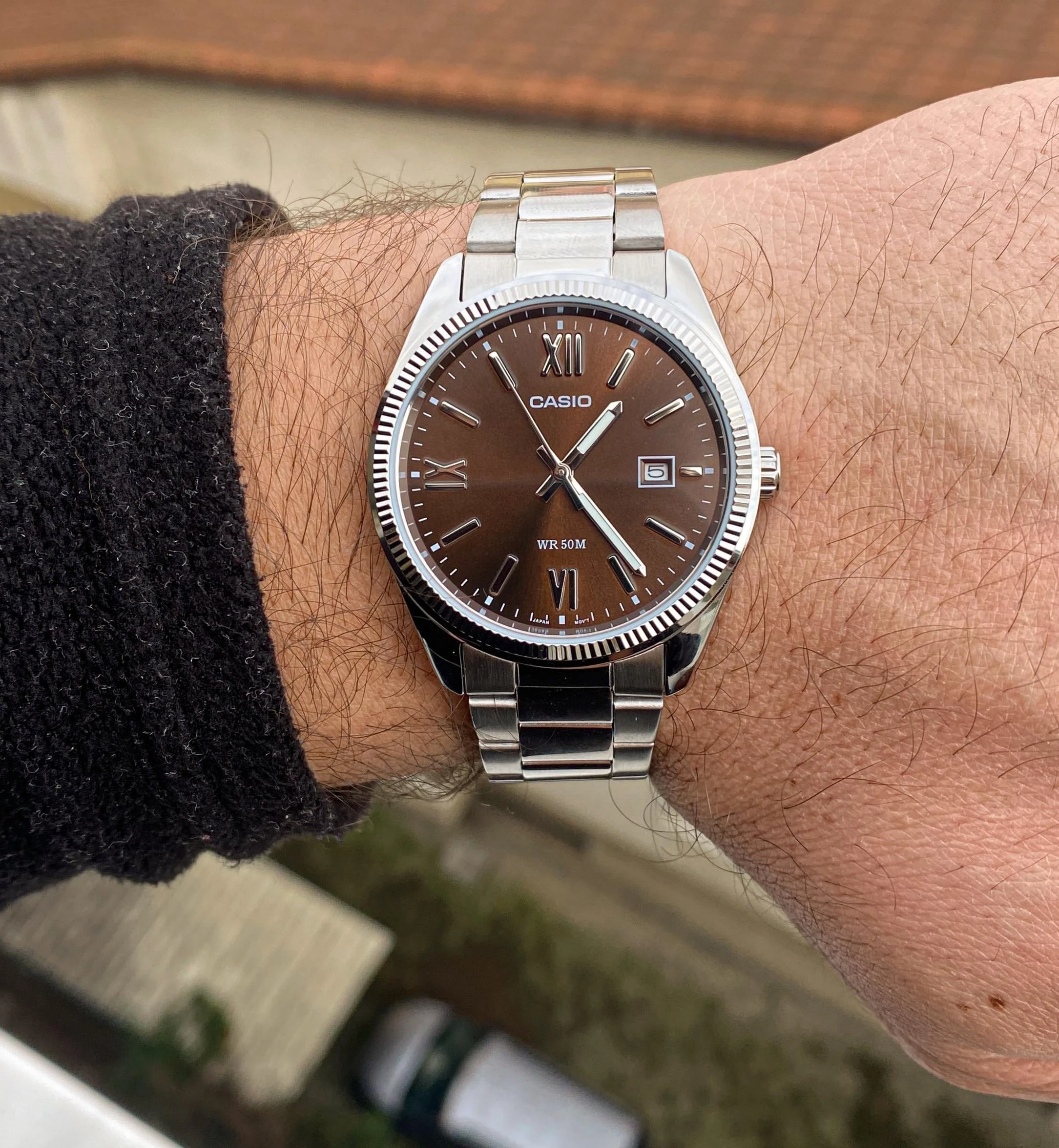 Montre Classique Homme Casio MTP-1302DD-5AVDF – Acier Inoxydable, Bracelet Métal, Cadran Marron, Étanche – Boutique Aïwatch