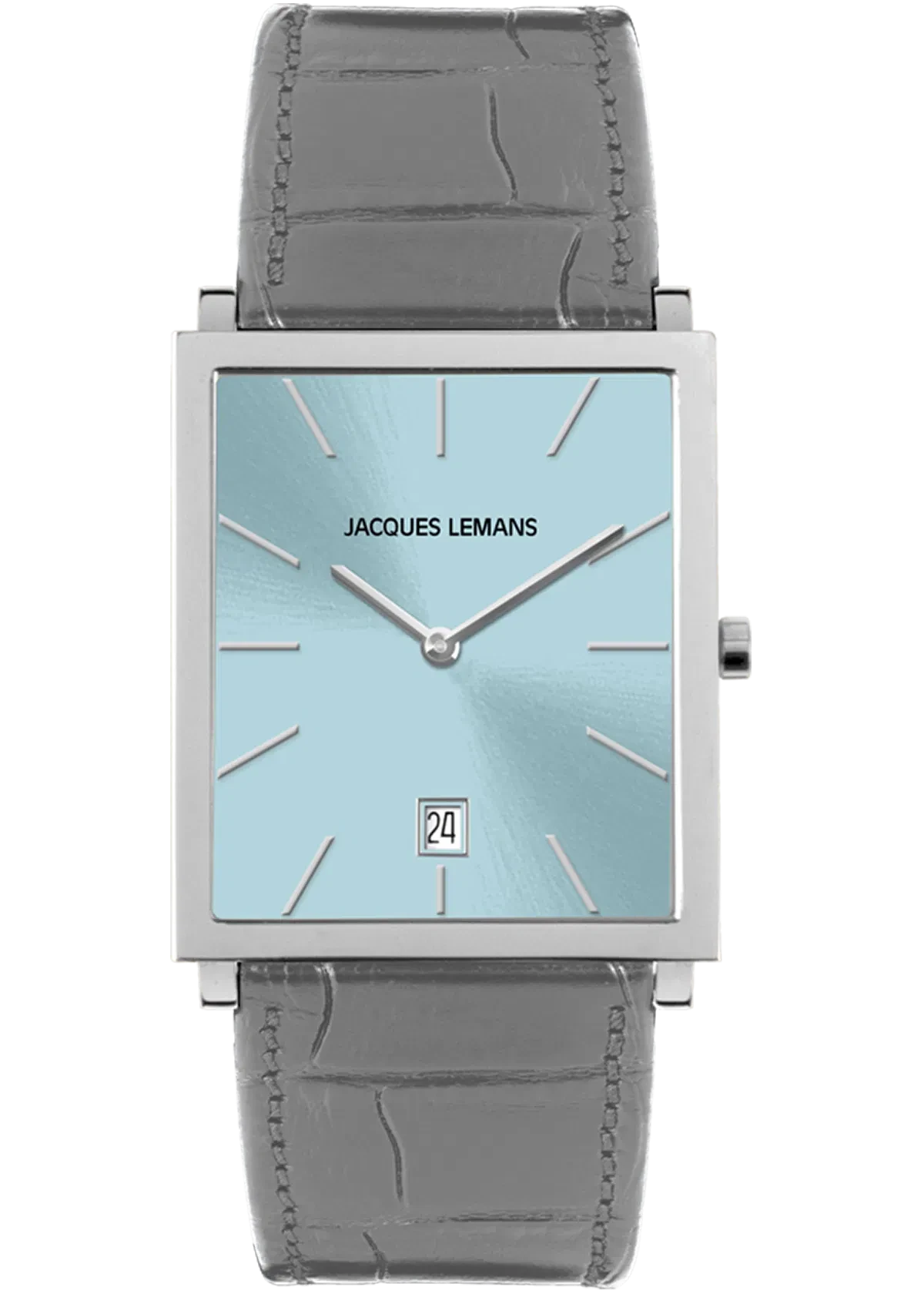 Montre Femme Jacques Lemans, Acier Brossé/Poli, Cadran Bleu, Bracelet Cuir Gris Crocodile, Verre Saphir, Rectangulaire 30 mm, 1-2173D