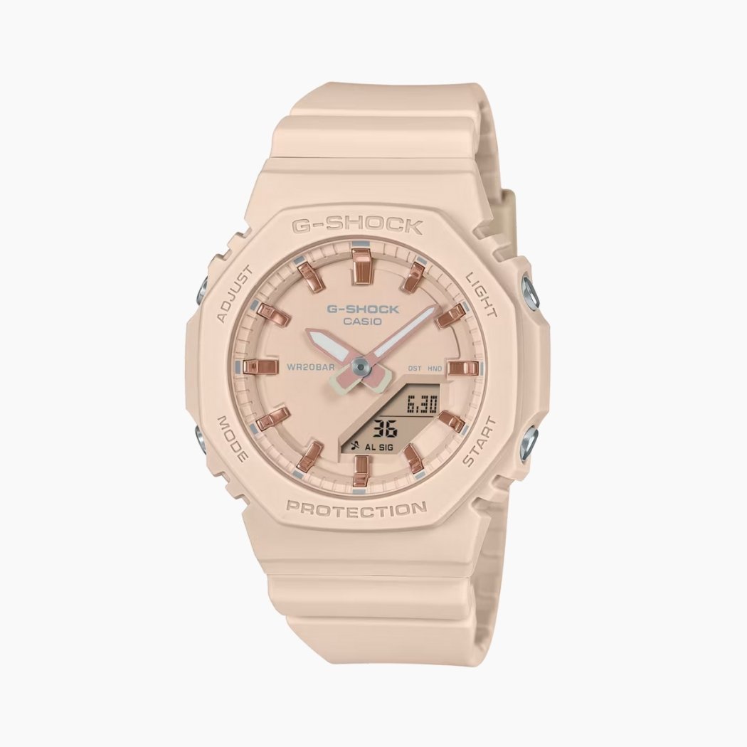 Montre G-Shock Casio Femme – Compacte 40mm, Étanche 20 ATM, Analogique-Digital, Bio-sourcée – Résine Rose Or – GMA-P2100M-4ADR