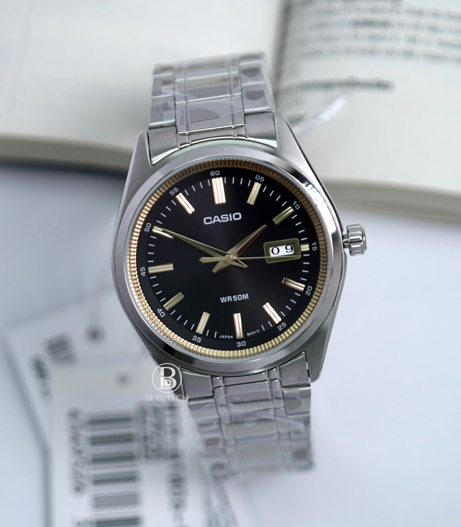 Montre homme Casio MTP-B180D-1A2VDF – Acier inoxydable, bracelet acier, verre minéral, étanche 50m, date, précision ±20s/mois, 3 ans batterie – Noir