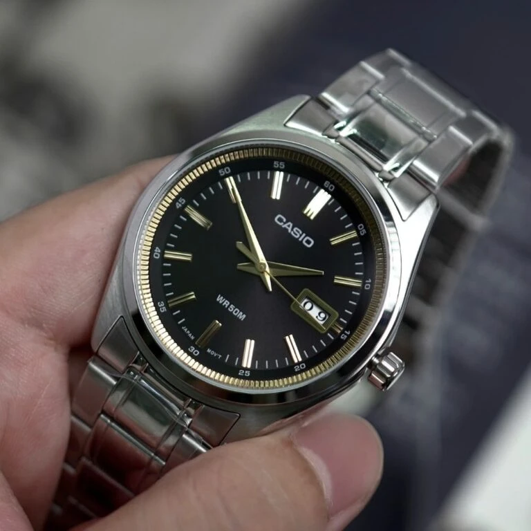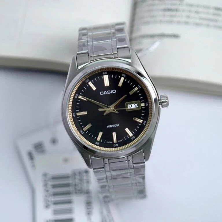 Montre homme Casio MTP-B180D-1A2VDF – Acier inoxydable, bracelet acier, verre minéral, étanche 50m, date, précision ±20s/mois, 3 ans batterie – Noir