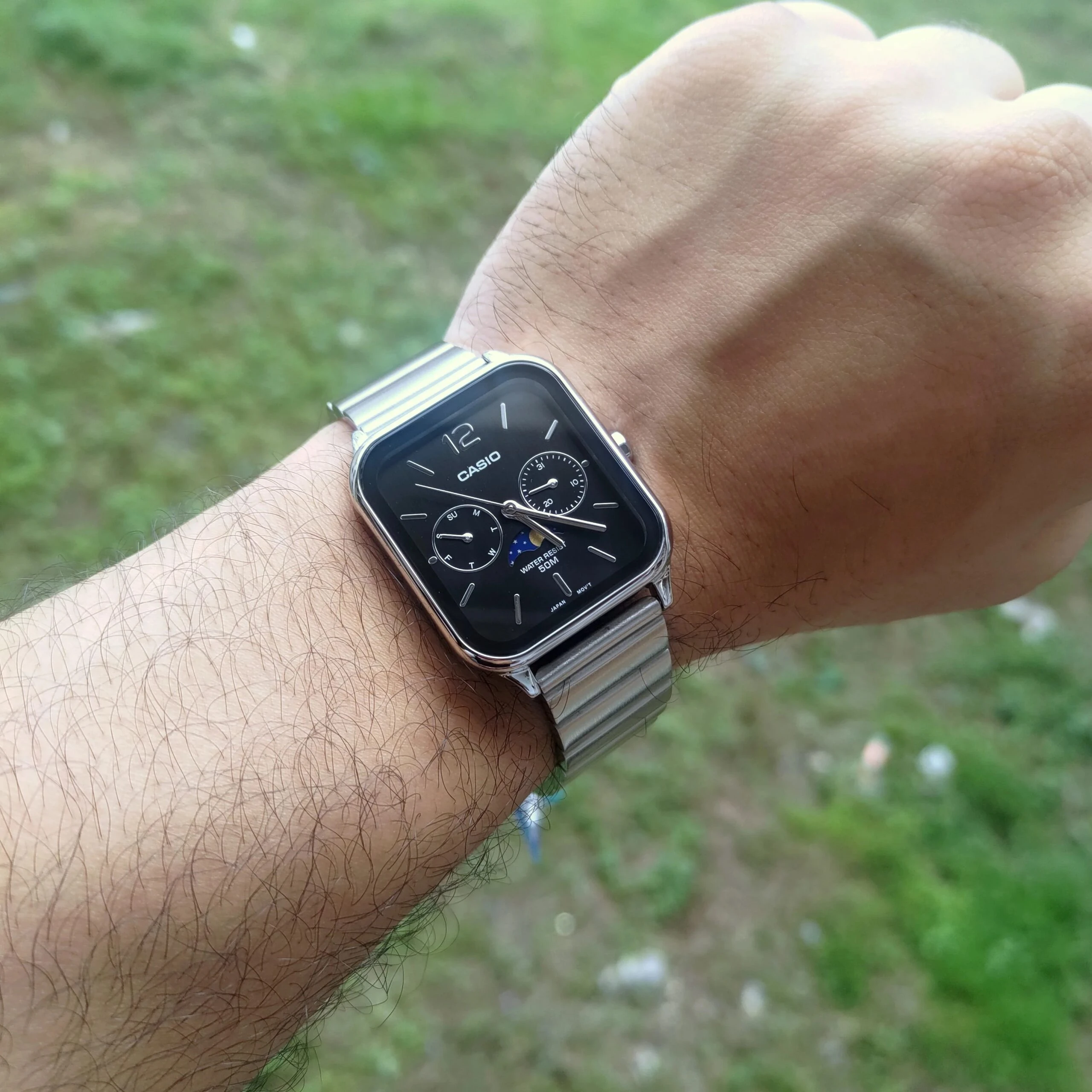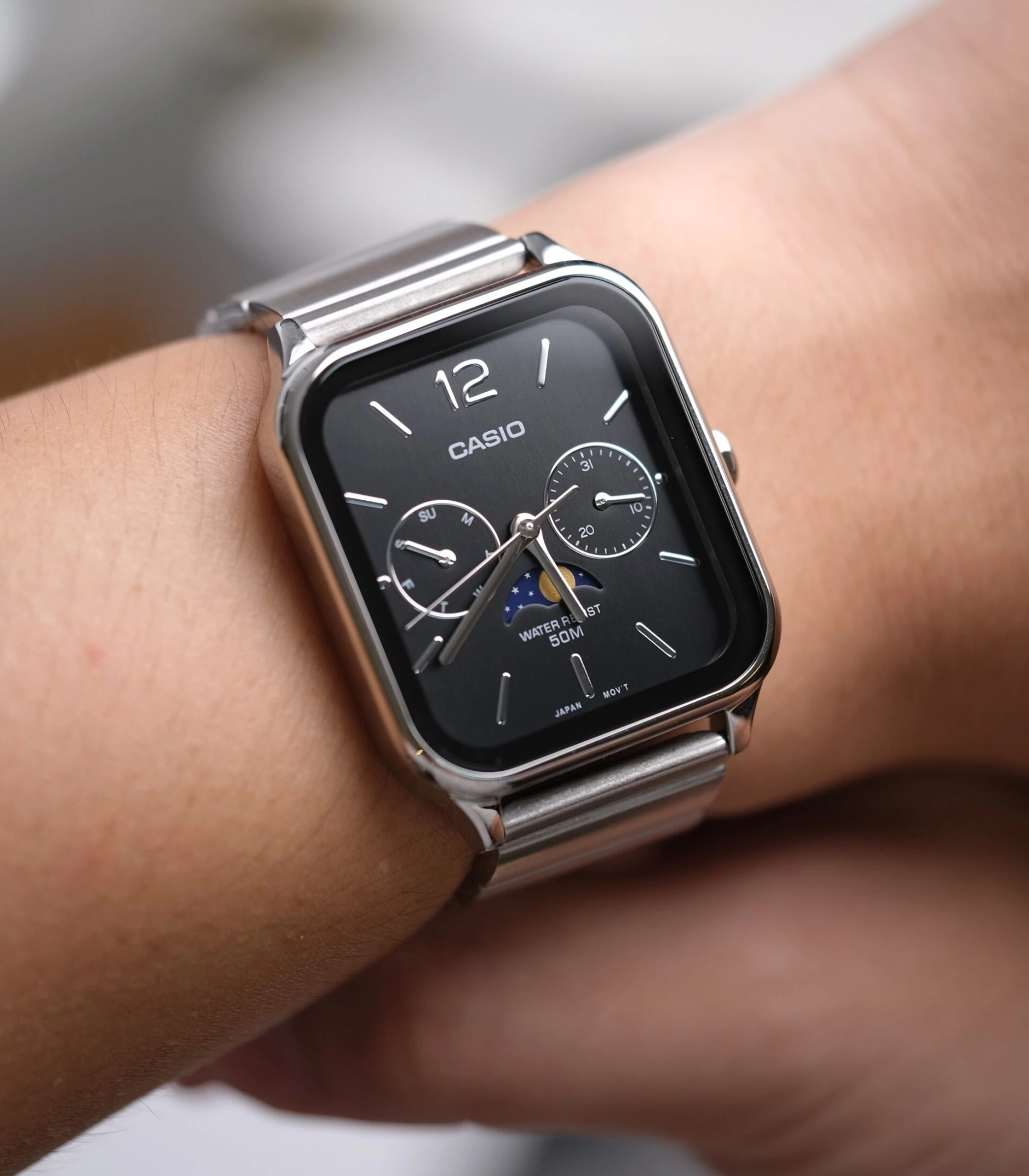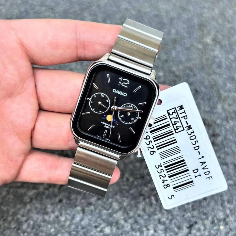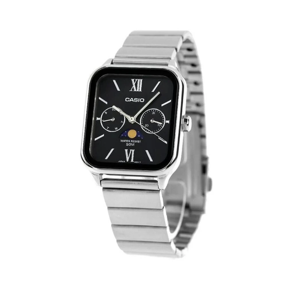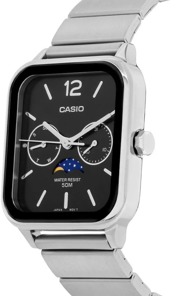 Montre homme Casio MTP-M305D-1AVDF – Phase de lune, Date, Jour, Acier inoxydable, Bracelet acier, Verre minéral, 50m étanche