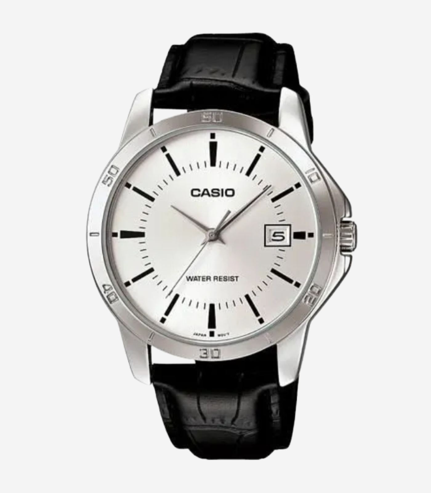 Cette montre Casio est à la fois élégante et pratique. Le bracelet en cuir noir est très confortable et l’affichage analogique est facile à lire.