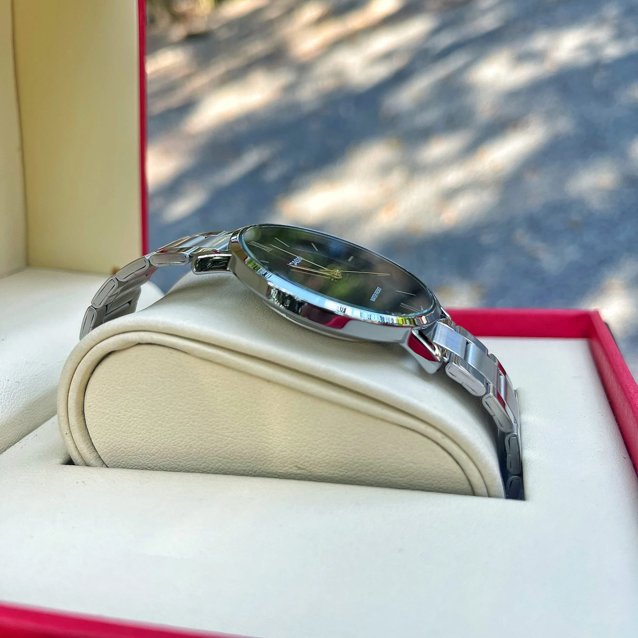 J’ai eu la montre à une bonne affaire. Excellente livraison.Dial a l’air très élégant. Le produit est venu sans la carte de garantie estampillée.