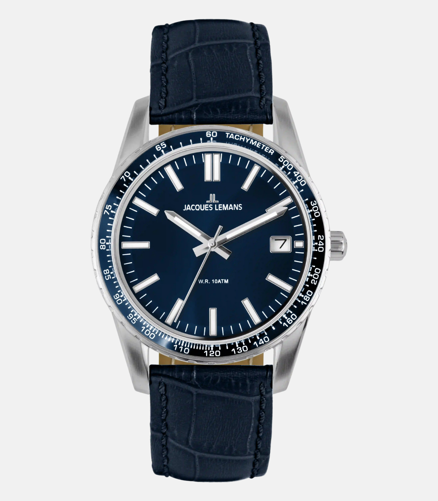 Montre Homme Jacques Lemans – 1-2022.1D – Bracelet en Cuir bleu – Affichage analogique – Résistant à l’eau