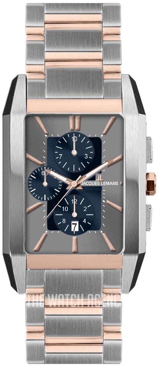 Montre Homme Jacques Lemans – Chronographe à Quartz, Acier, Étanche, Cadran Rond 41-45mm, Bracelet Acier – Bleu, Gris, Doré- Réf 1-2161O