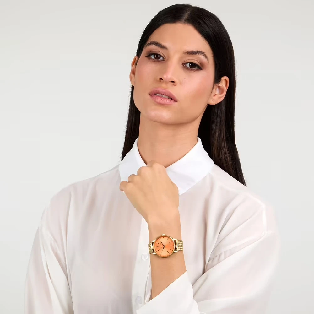 Montre Quartz Femme – Acier, Étanche 5 ATM, Affichage Analogique, Bracelet Acier, Cadran Orange – Réf. R2453152516