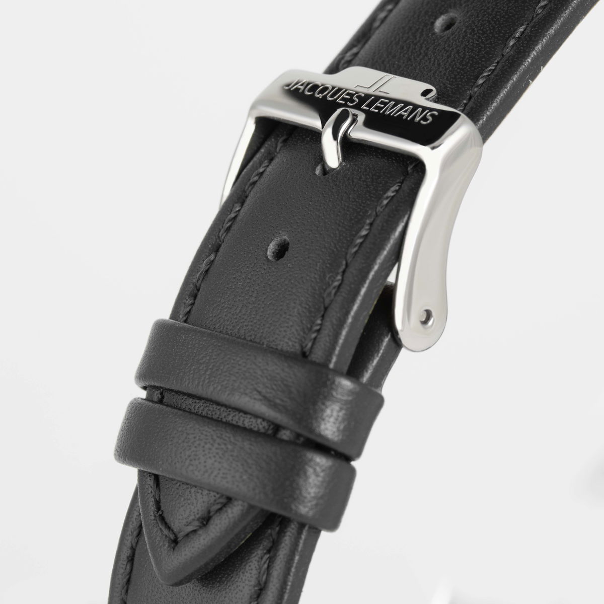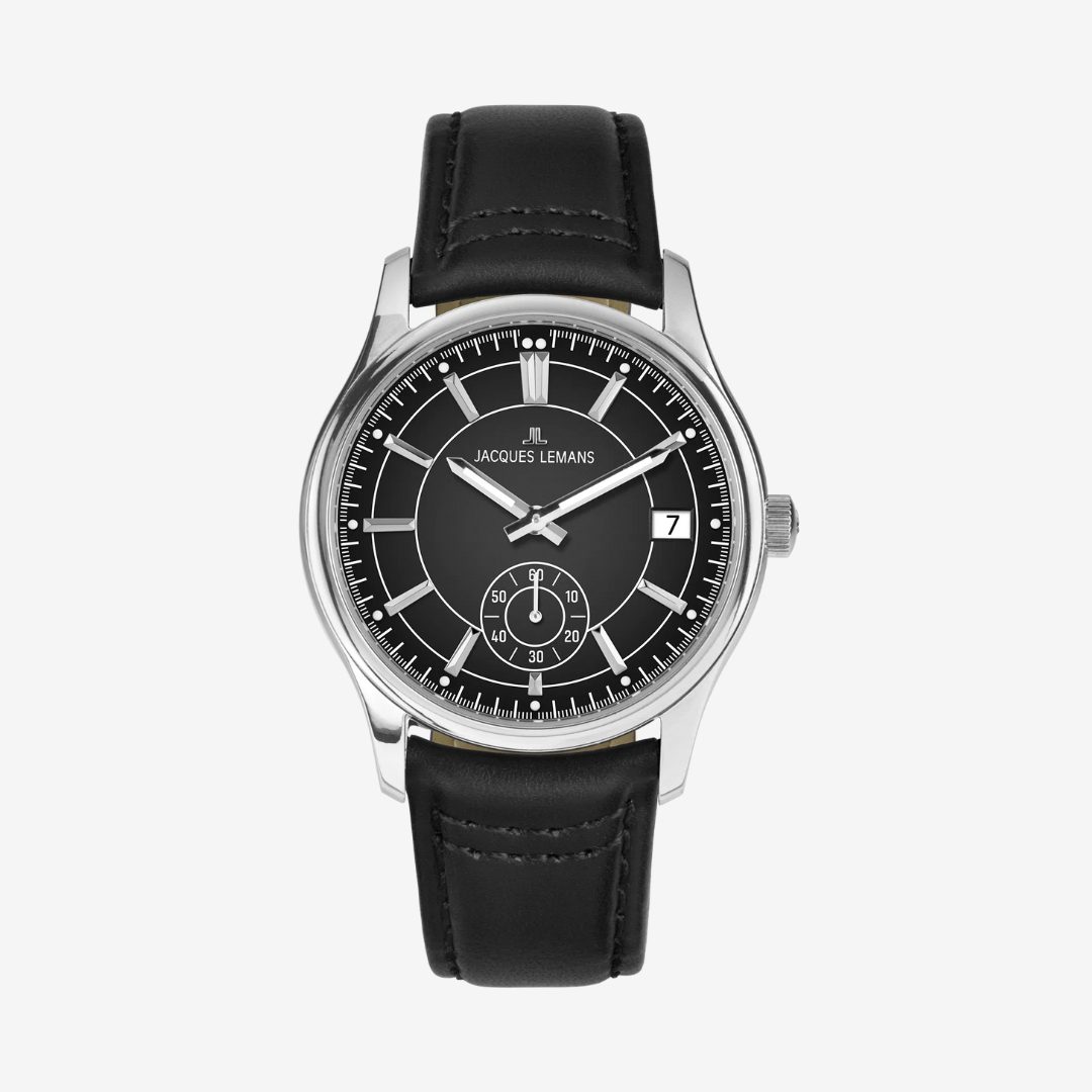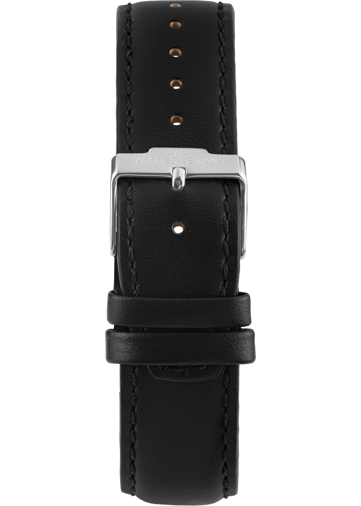 Montre Quartz Homme – Jacques Lemans – acier inoxydable, Cadran Noir, bracelet cuir, verre minéral, étanche 10 bar, date, 41 mm – 1-2197A