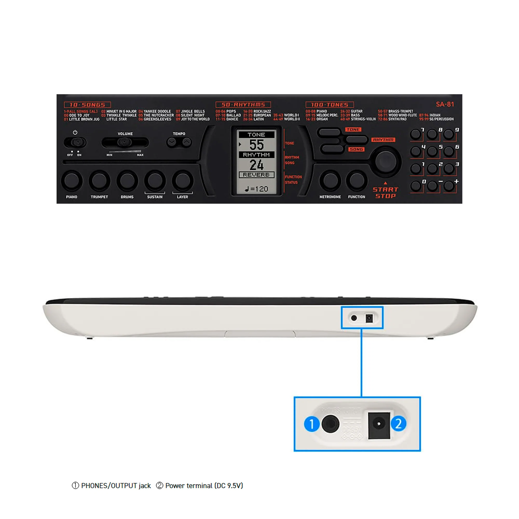 Piano Clavier arrangeur portable enfants 44 touches SA-81H2 – 100 sons, 50 rythmes, 10 chansons intégrées – Multicolore