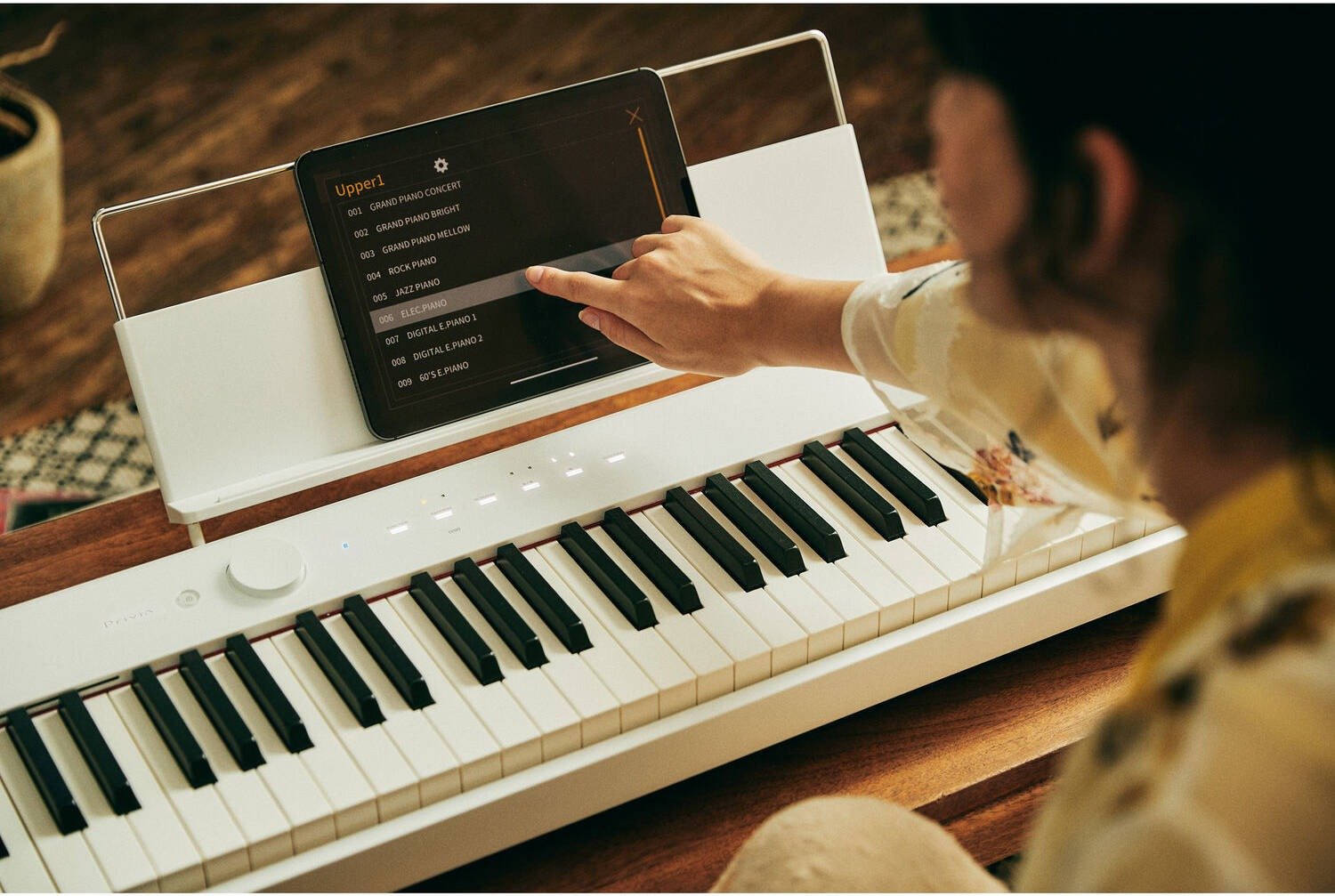 La qualité sonore du piano Casio PX-S1100WE est incomparable. Appréciez chaque note grâce à sa technologie avancée qui reproduit le son authentique des pianos acoustiques, vous garantissant une immersion totale dans l’univers musical.