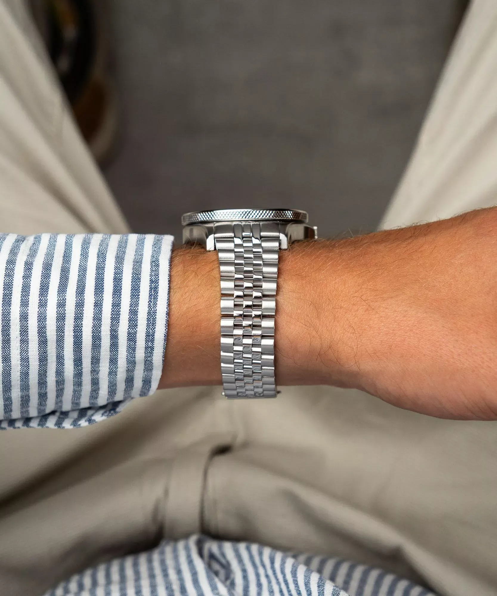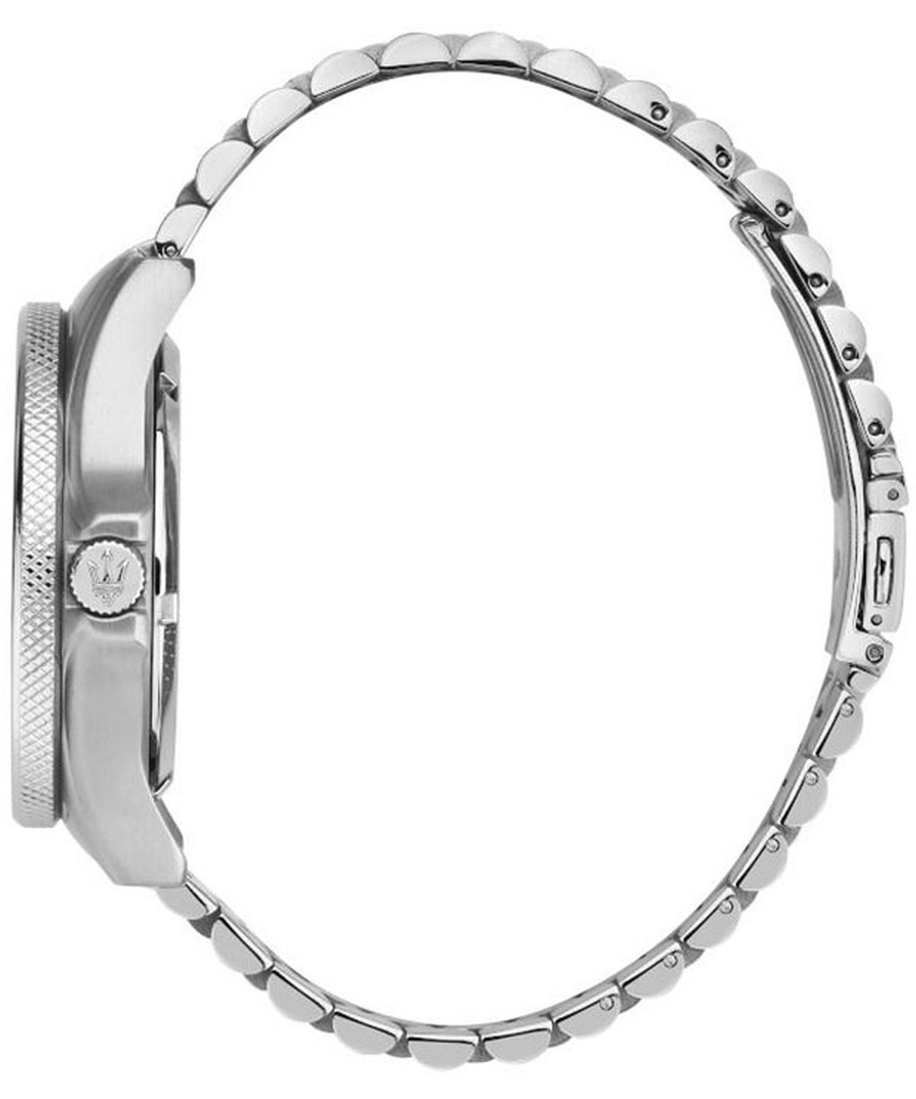 Le bracelet en acier couleur argent, parfaitement assorti au boîtier, ajoute une touche chic à l’ensemble. Sa conception est à la fois pratique et esthétique, permettant un ajustement précis et un port agréable sur le poignet. La couleur argentée reflète la lumière de manière attrayante, renforçant le caractère luxueux de la montre. Ensemble, le boîtier et le bracelet de la Montre Maserati Sfida créent une harmonie visuelle, transcendant les tendances pour obtenir un style intemporel.