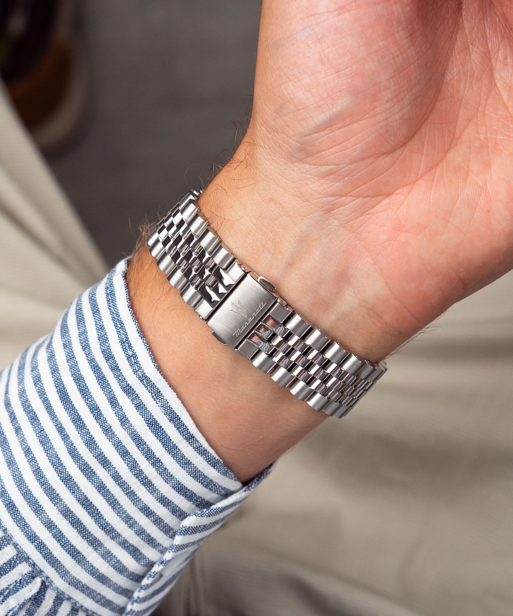 Au niveau des matériaux, la qualité est au cœur de la conception de cette montre. Le boîtier en acier inoxydable est un symbole de robustesse et de durabilité, capable de résister à l’usure quotidienne tout en conservant son éclat. L’utilisation de l’acier permet également d’obtenir une finition polie, apportant une touche de modernité et de sophistication. Le choix de ce matériau vise non seulement à assurer la longévité de la montre, mais également à garantir une expérience de port des plus confortables.