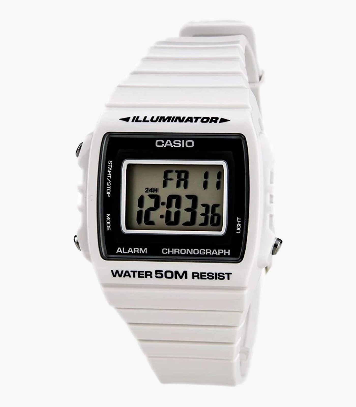 Montre Casio Homme – Bracelet Blanc En Resine – Cadran Blanc – Boitier En Resine – 12 Mois De Garantie – W-215H-7Avdf